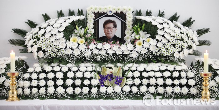 (서울=포커스뉴스) 16일 오후 서울 구로구 성공회대학교 성미가엘성당에 마련된 故 신영복 성공회대 석좌교수의 빈소에 영정사진이 놓여 있다. <성공회대학교 제공>