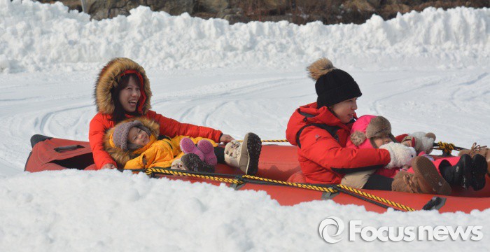 | △ 스노우 래프팅 즐기는 관광객들 |