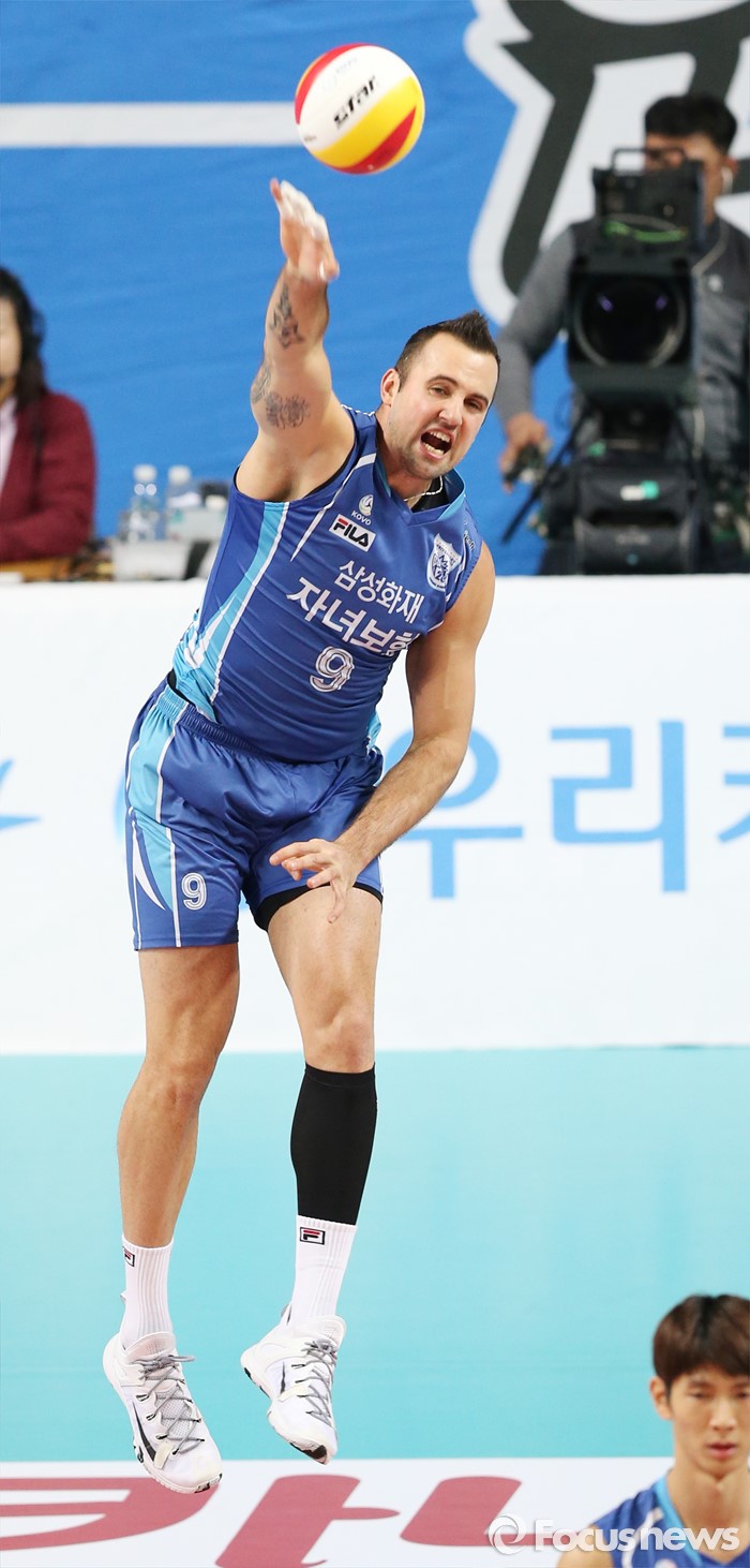 이날 승리한 삼성화재는 16승 8패로 승점 43점을 기록하며 3위 현대캐피탈(승점 45점)과의 승점차를 2점으로 줄였다. 반면 KB손해보험은 6승 18패로 기록하며 승점 17점으로 6위를 유지했다.(서울=포커스뉴스) 2015년 12월3일 장충체육관에서 열린 '2015-2016NH농협 V-리그' 남자부 우리카드-삼성화재 경기에서 삼성화재 그로저가 강력한 스파이크 서브를 넣고 있다. 2015.12.03 우정식 기자