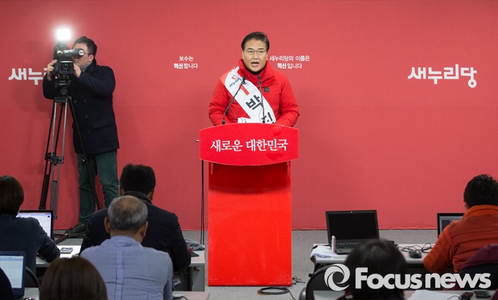 (서울=포커스뉴스) 오세훈 전 서울시장의 '종로' 출마 선언 기자회견이 끝난 후 박진 전 새누리당 의원이 17일 오후 새누리당 당사에서 오세훈 전 서울 시장의 종로 출마 선언에 대해 깊은 유감을 표하며 기자회견을 하고 있다.