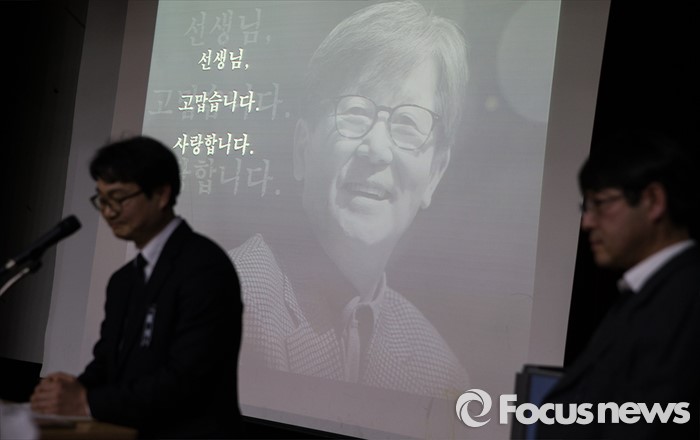 (서울=포커스뉴스) 17일 밤 서울 구로구 성공회대학교에서 열린 '신영복 교수 추모의 밤' 행사에서 '더불어 숲' 관계자가 추모사를 하고 있다.