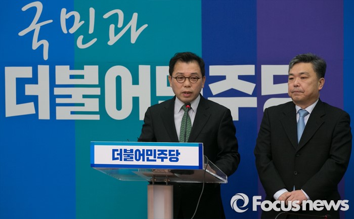 (서울=포커스뉴스) 오성규(왼쪽) 전 서울시설관리공단 이사장과 김민영 전 참여연대 사무처장이 18일 오전 서울 여의도 국회에서 더불어민주당 인재영입 기자회견을 하고 있다.