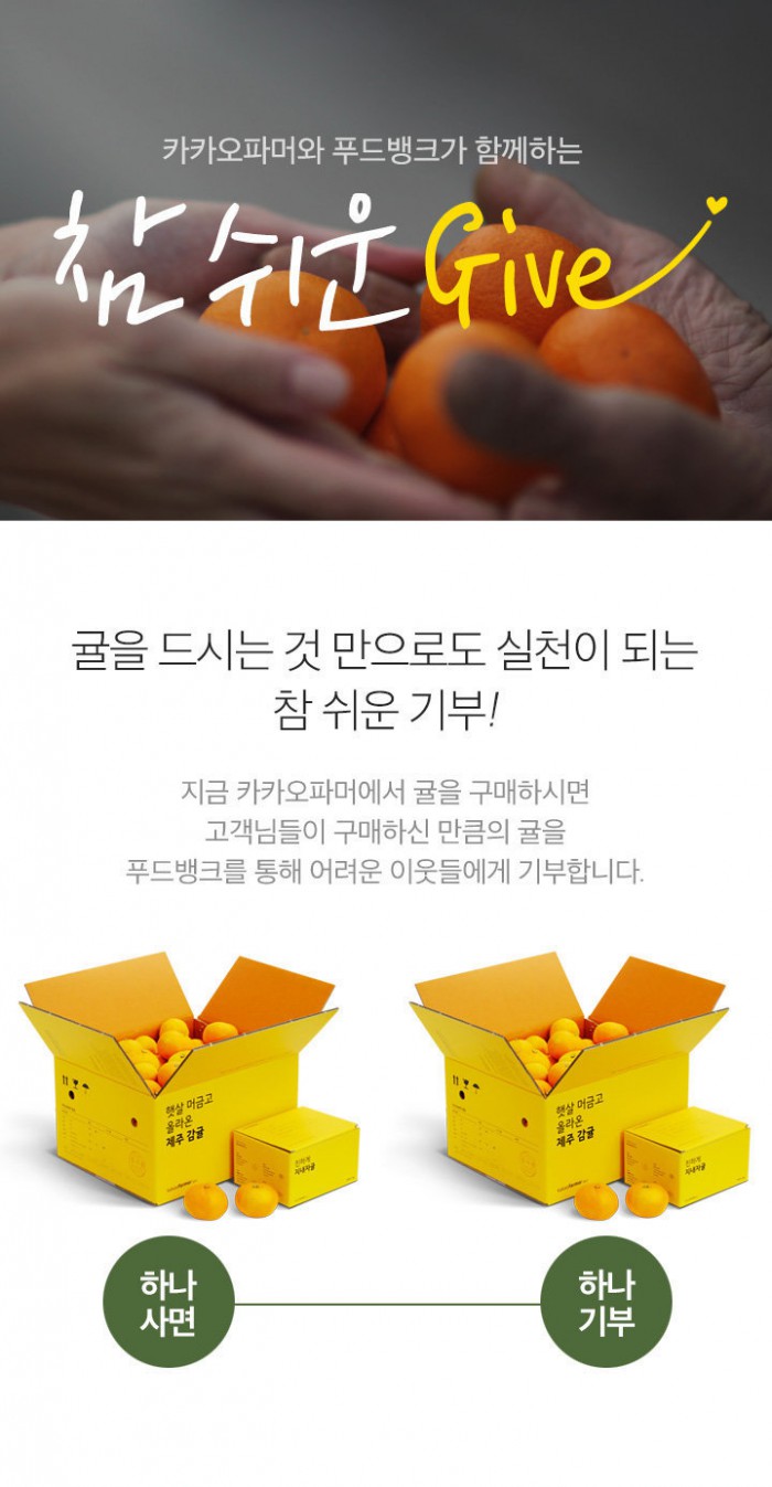 (서울=포커스뉴스) 카카오(대표 임지훈)의 제주감귤 모바일 유통플랫폼인 '카카오파머 제주'는 제주 감귤의 소비 촉진과 소외된 이웃을 돕기 위해 '참쉬운 기부 캠페인'을 오는 24일까지 진행한다.