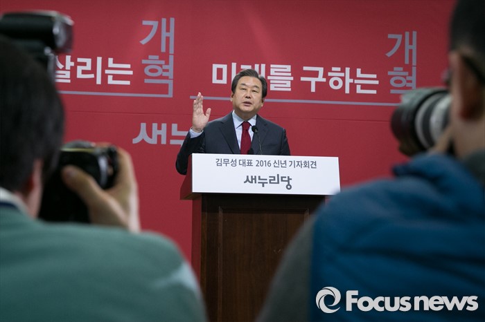 (서울=포커스뉴스) 김무성 새누리당 대표가 18일 오전 서울 여의도 국회 의원회관에서 신년 기자회견을 하고 있다.