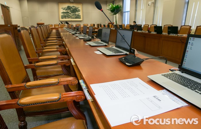 (서울=포커스뉴스) 18일 오전 서울 여의도 국회에서 여당 단독으로 열린 운영위원회 전체회의가 야당 불참으로 산회되어 의원들이 퇴장한 빈자리만 보이고 있다.