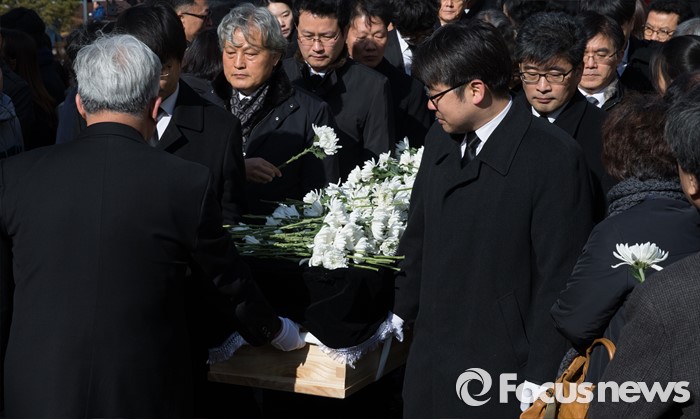 (서울=포커스뉴스) 18일 오후 서울 구로구 성공회대학교에서 엄수된 '故 신영복 석좌교수 영결식'에서 고인의 영정과 유해가 운구되고 있다.