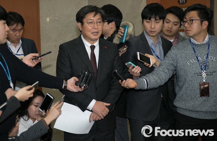 | △ 취재진 질문 답하는 더민주 이춘석 |