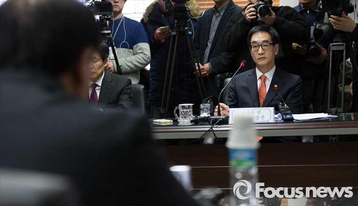 (서울=포커스뉴스) 18일 오후 서울 종로구 정부서울청사에서 이준식 부총리 겸 교육부 장관이 전국 시도교육감협의회 회장단 간담회에 참석해 장휘국 광주시교육감의 모두발언을 경청하고 있다.