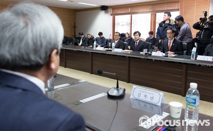 (서울=포커스뉴스) 18일 오후 서울 종로구 정부서울청사에서 이준식(오른쪽) 부총리 겸 교육부 장관이 전국 시도교육감협의회 회장단 간담회에 참석해 모두발언을 하고 있다.