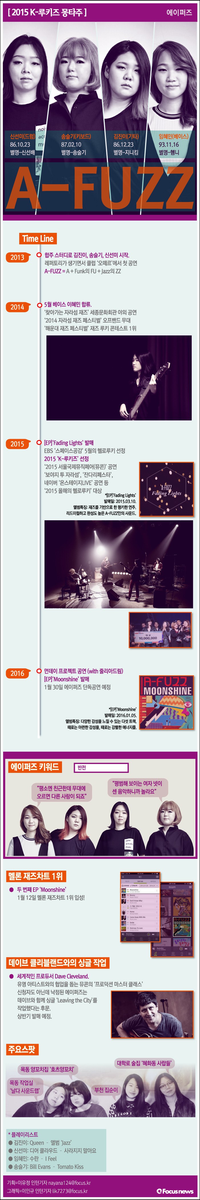 (서울=포커스뉴스) 최고의 루키를 가리는 '2015 K-루키즈 파이널 콘서트'가 오는 23일(토) 오후 6시 서울 광진구 광장동 악스코리아에서 개최된다. 6팀의 인디밴드 중 다섯 번째 팀은 에이퍼즈(A-FUZZ).