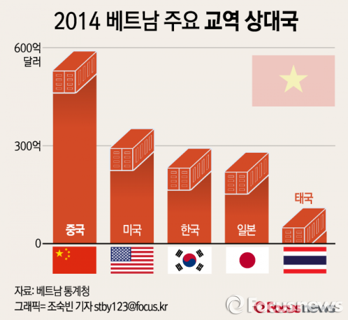 베트남의 대미(對美)접근은 조심스럽다. 2014년 미국은 베트남에 대한 무기금수(禁輸)를 부분 해제했다. 하지만 베트남은 무기 주문에 신중을 기해 왔다. 전문가들은 베트남이 ‘베트남-중국-미국’의 삼각구도 속에서 자국을 자리매김하는 데 있어 타고난 조심성을 발휘하고 있다고 말한다.오는 20~28일 하노이에서 열리는 베트남공산당 12차 전당대회 개최를 알리는 조형물 앞을 13일 오토바이를 탄 남자들이 지나가고 있다.(Xinhua/Yan Jianhua)2016.01.19 신화/포커스뉴스 응웬 푸 쫑 베트남공산당 서기장(왼쪽)이 지난해 7월 7일 백악관에서 버락 오바마 미국 대통령과 회담하고 있다.(Photo by Martin H. Simon-Pool/Getty Images)2016.01.18 ⓒ게티이미지/멀티비츠 중국은 베트남의 최대 교역 상대국이다. 2016.01.19 송철복 국제전문위원
