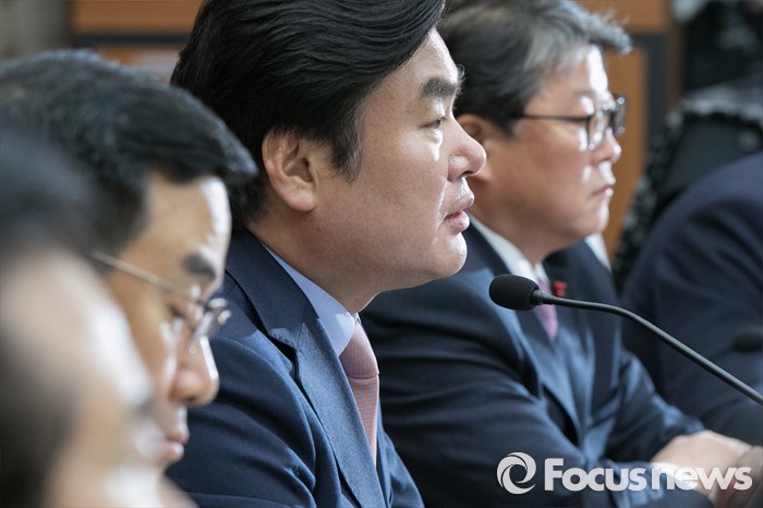 (서울=포커스뉴스) 원유철(오른쪽 두번째) 새누리당 원내대표가 19일 오전 서울 여의도 국회에서 열린 원내대책회의에 참석해 모두발언하고 있다.