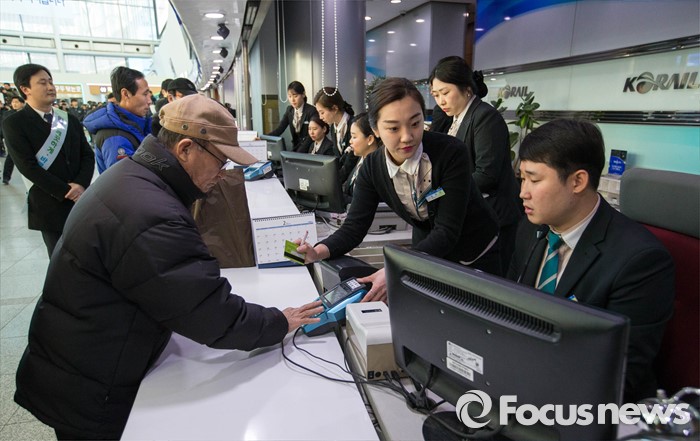 (서울=포커스뉴스) 설 승차권 현장예매가 시작된 19일 오전 서울 중구 서울역 매표소에서 시민들이 승차권을 구입하고 있다. 코레일은 19일과 20일, 이틀 동안 설 연휴 열차 승차권 예매를 시작한다고 밝혔다.