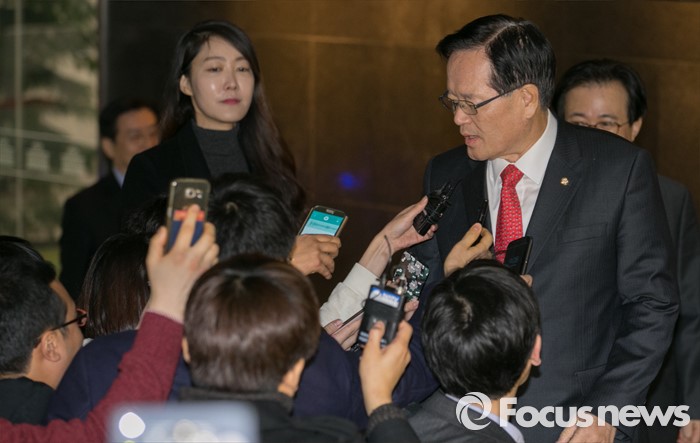 (서울=포커스뉴스) 새누리당이 단독으로 직권상정 완화 국회법 개정 시도에 착수한 19일 오전 정의화 국회의장이 서울 여의도 국회로 출근하며 취재진 질문을 받고 있다.
