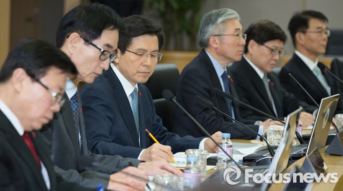 (세종=포커스뉴스) 황교안 국무총리가 19일 오전 세종시 정부세종청사 국무회의장에서 열린 청와대-세종청사 영상 국무회의에 참석해 박근혜 대통령의 모두발언을 메모하고 있다.
