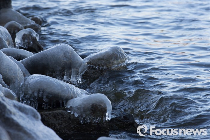 (서울=포커스뉴스) 서울 아침기온이 영하 15도까지 내려간 19일 오전 서울 서초구 반포한강공원 바위에 얼음이 얼어 있다.