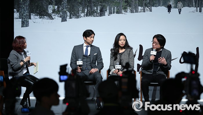 '남과 여'는 핀란드 하얀 설원 속에서 만나 사랑에 빠진 상민(전도연 분), 기홍(공유 분)의 이야기를 담은 정통멜로영화다. 오는 2월 개봉 예정이다.(서울=포커스뉴스) 19일 오전 서울 강남구 압구정 CGV에서 열린 영화 '남과 여' 제작보고회에 참석한 영화감독 이윤기가 촬영 소감을 밝히고 있다. 왼쪽부터 방송인 박경림, 배우 공유, 전도연, 영화감독 이윤기. 2016.01.19 김유근 기자