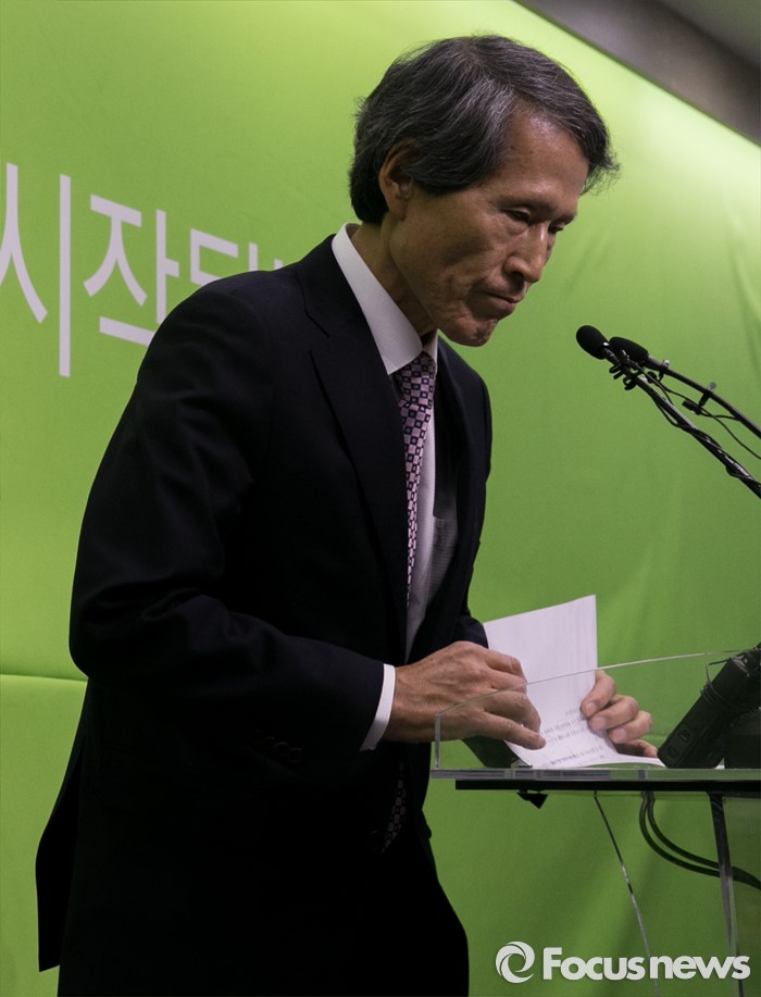 (서울=포커스뉴스) 한상진 국민의당 창당준비위원장이 19일 오후 서울 마포구 당사에서 4·19 관련단체 면담 후 기자회견을 열고 이승만 국부 발언 관련 사과를 하고 있다.