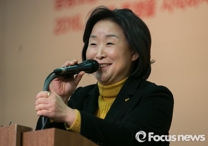 (서울=포커스뉴스) 정의당 심상정 대표가 19일 오후 서울 중구 은행회관 국제회의실에서 열린 금융노조 제51차 정기전국대의원대회에 참석해 축사를 하고 있다.