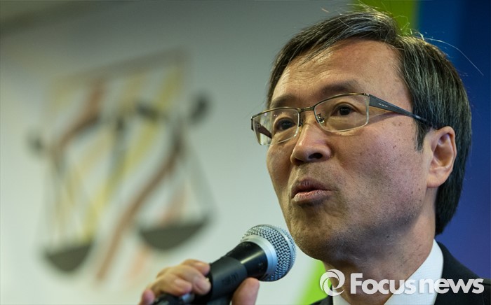 (서울=포커스뉴스) 19일 오후 서울 중구 프레스센터에서 열린 법조언론인클럽 신년회 겸 시상식에서 올해의 법조인상을 받은 김용직 변호사가 소감을 밝히고 있다.