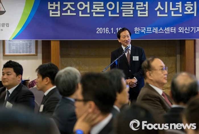 (서울=포커스뉴스) 19일 오후 서울 중구 프레스센터에서 열린 2016년 법조언론인클럽 신년회 겸 시상식에서 류희림 법조언론인클럽 회장이 인사하고 있다.