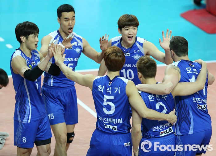 | △ 기뻐하는 대한항공 선수들 |