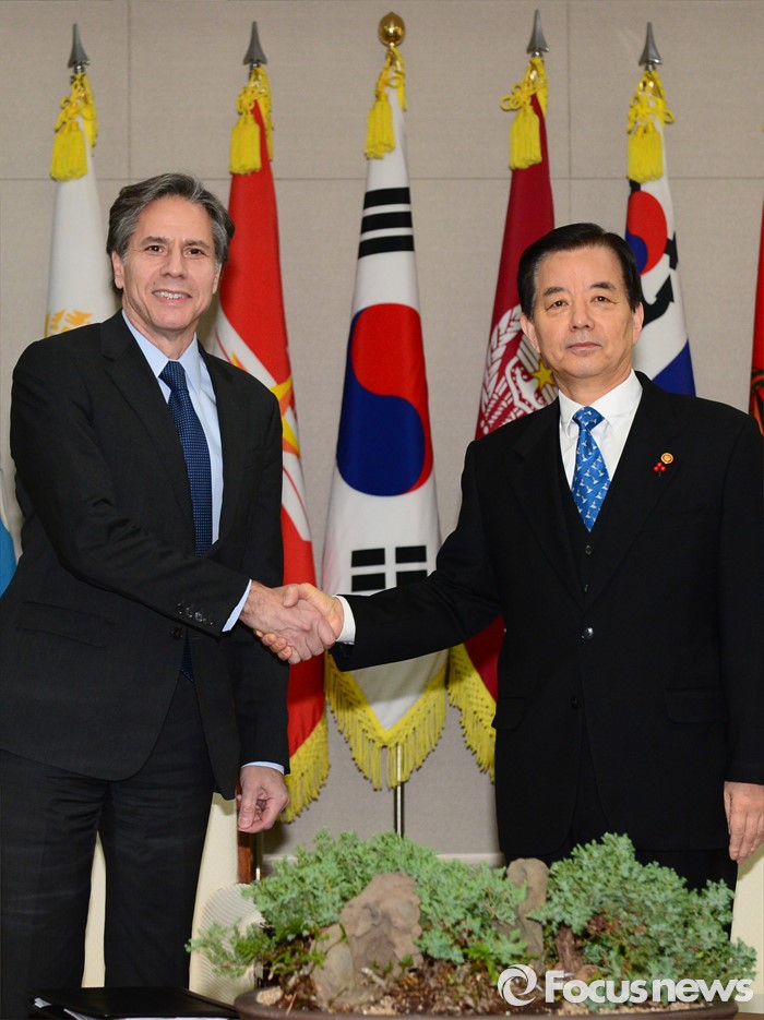 (서울=포커스뉴스) 20일 오전 서울 국방부에서 한민구 장관과 토니 블링큰 미 국무부 부장관이 북한의 제4차 핵실험에 대한 평가와 함께 한·미 양국의 공조 방안 등을 논의하기에 앞서 기념촬영을 하고 있다.