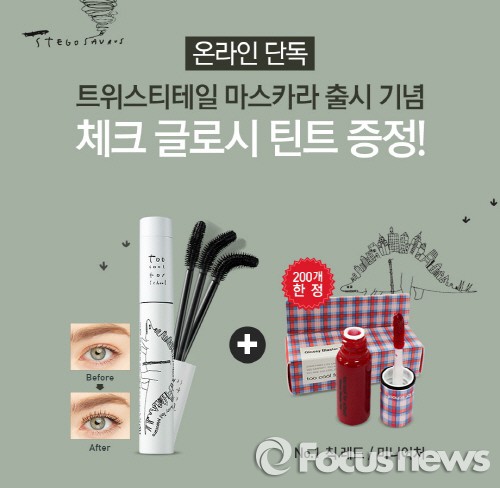 투쿨포스쿨 공식 온라인 쇼핑몰에서 트위스티테일 마스카라를 구매하는 200명에게 체시 글로시 틴트 1호 칙 레드를 선착순으로 증정한다.