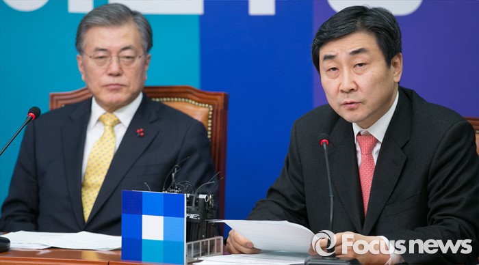 (서울=포커스뉴스) 이종걸 더불어민주당 원내대표가 20일 오전 서울 여의도 국회에서 열린 최고위원회의에 참석해 발언하고 있다. 왼쪽은 문재인 대표.