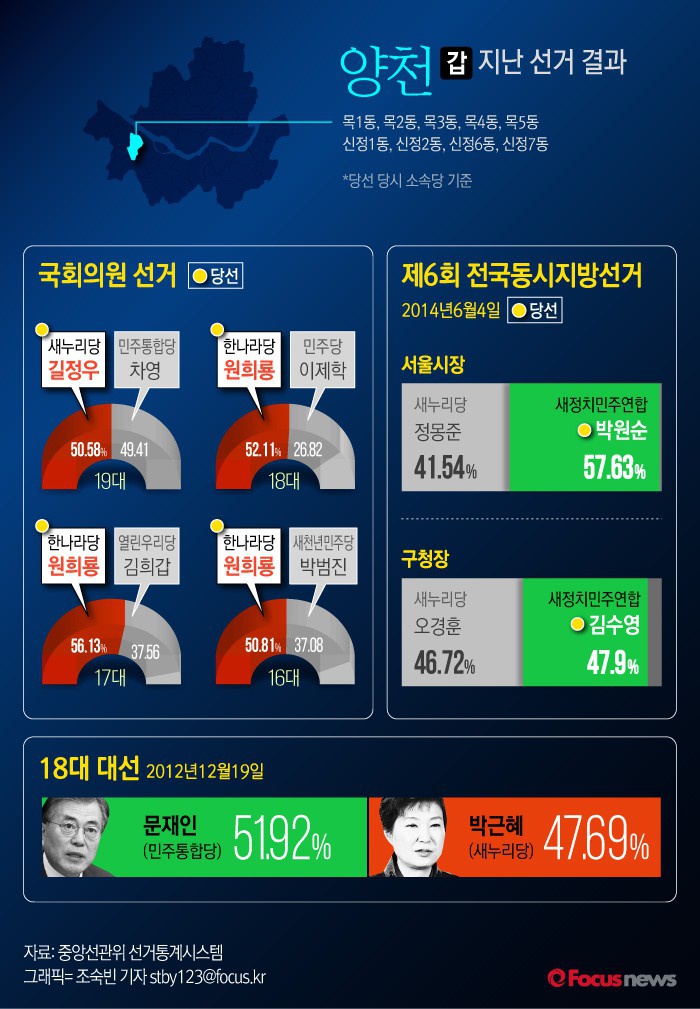 (서울=포커스뉴스) 양천갑 지역의 지난 선거 결과를 정리했다.