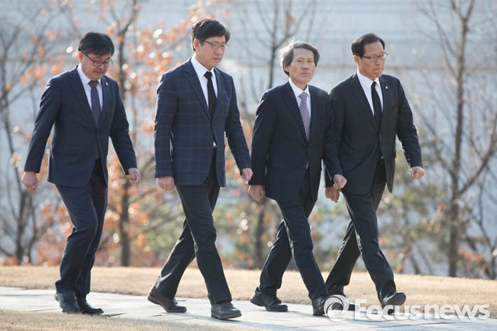 (서울=포커스뉴스) 한상진 국민의당 창당준비위원장이 20일 오전 서울 용산구 백범 김구 선생 묘역에 참배하기 위해 걸어오고 있다.