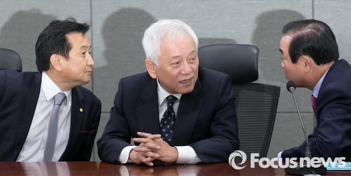 (서울=포커스뉴스) 20일 오전 서울 여의도 국회 의원회관에서 열린 국민의당 소속 의원단 회의에 참석한 김영환(왼쪽부터), 김한길, 장병완 의원이 대화하고 있다.