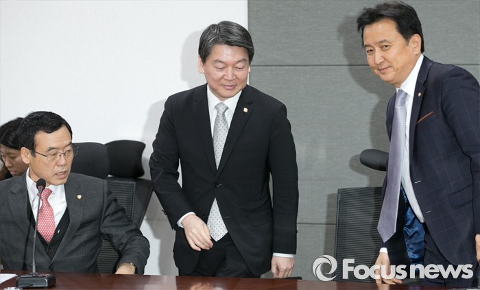 (서울=포커스뉴스) 20일 오전 서울 여의도 국회 의원회관에서 열린 국민의당 소속 의원단 회의에 안철수 의원이 참석하고 있다. 왼쪽부터 임내현, 안철수, 김영환 의원.