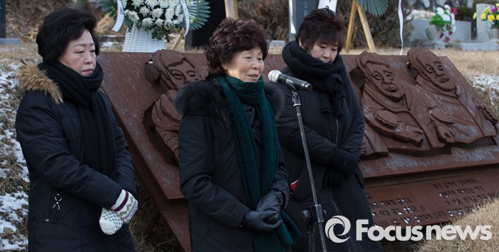 (남양주=포커스뉴스) 20일 오후 경기도 남양주시 모란공원묘지에서 열린 '용산참사 7주기 철거민 민중열사 추모제'에서 유족들이 발언을 하고 있다.