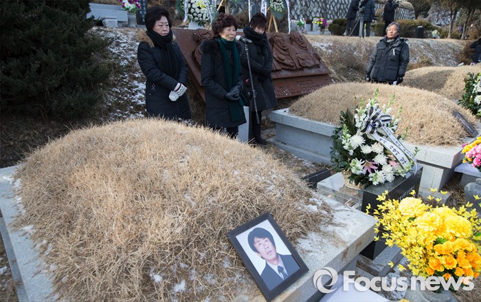 (남양주=포커스뉴스) 20일 오후 경기도 남양주시 모란공원묘지에서 열린 '용산참사 7주기 철거민 민중열사 추모제'에서 유족들이 발언을 하고 있다.