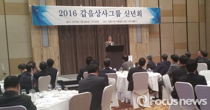 지난 8일 밀레니엄 서울힐튼 호텔에서 열린 ‘2016 갑을상사그룹 신년회’에 박유상 고문, 박효상 부회장과 그룹내 임원들이 참석, 그룹전체 손익을 흑자로 반전시킨 지난해 성과를 점검했다.