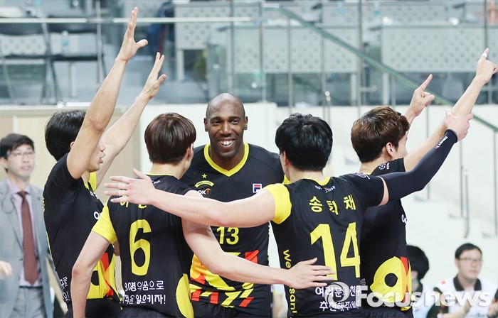 (서울=포커스뉴스) 시몬의 활약을 앞세운 OK저축은행이 KB손해보험을 꺾고 3연패에서 벗어났다.