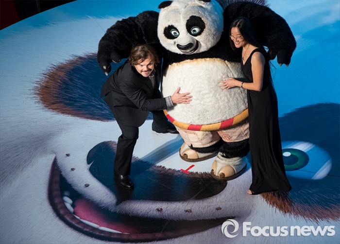 (서울=포커스뉴스) 할리우드 애니메이션 '쿵푸팬더 3' 홍보차 내한한 배우 잭 블랙과 여인영 감독이 20일 오후 서울 영등포구 타임스퀘어에서 열린 레드카펫 행사에 참석해 포즈를 취하고 있다.