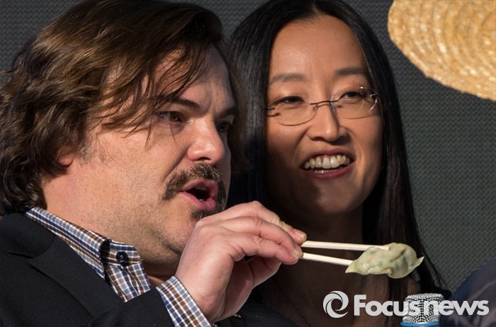 (서울=포커스뉴스) 할리우드 애니메이션 '쿵푸팬더 3' 홍보차 내한한 배우 잭 블랙이 20일 오후 서울 영등포구 타임스퀘어에서 열린 레드카펫 행사에 참석해 팬에게 만두를 먹여주고 있다.