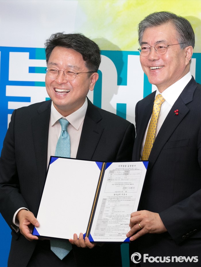 | △ 환하게 웃는 문재인·이철희 |