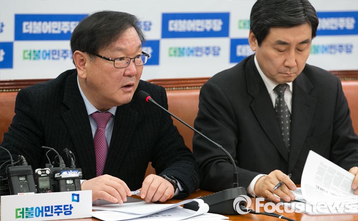 (서울=포커스뉴스) 김태년 더불어민주당 누리과정대책특위원장이 21일 오전 서울 여의도 국회에서 열린 정책조정회의에 참석해 발언을 하고 있다.