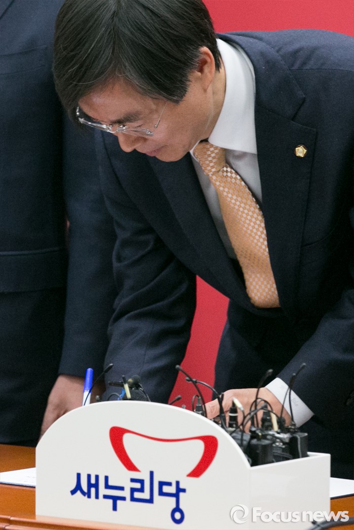 (서울=포커스뉴스) 더불어민주당을 탈당한 조경태 의원이 21일 오전 서울 여의도 국회에서 열린 새누리당 최고위원회의에 참석해 입당원서를 작성하고 있다.