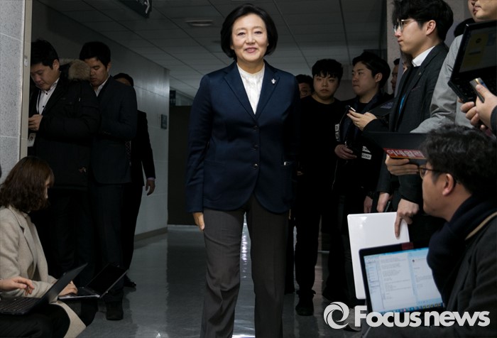 (서울=포커스뉴스) 당 잔류를 공식 선언한 박영선 더불어민주당 의원이 21일 오전 서울 여의도 국회 의원회관에서 기자간담회를 위해 의원실로 이동하고 있다.