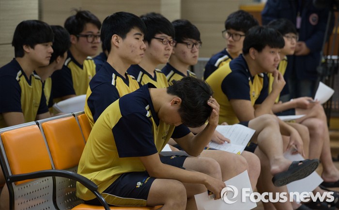 (서울=포커스뉴스) 2016년 첫 징병검사가 실시된 21일 오전 서울 영등포구 서울지방병무청에서 징병대상자들이 자신의 순서를 기다리고 있다.