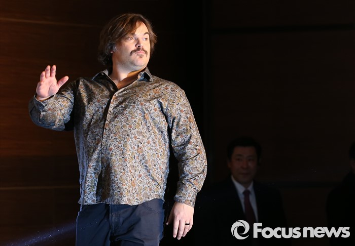 (서울=포커스뉴스) 21일 오전 서울 영등포구 콘래드 서울호텔에서 열린 쿵푸팬더3 기자간담회에 참석한 영화배우 잭 블랙이 손인사를 하고 있다.