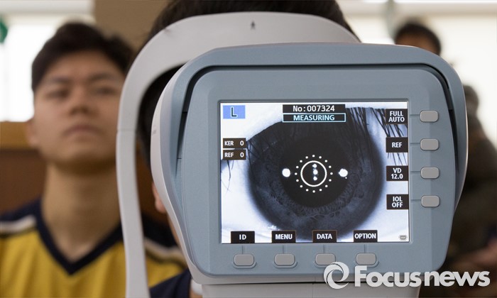 (서울=포커스뉴스) 2016년 첫 징병검사가 실시된 21일 오전 서울 영등포구 서울지방병무청에서 징병대상자들이 시력 검사를 하고 있다.