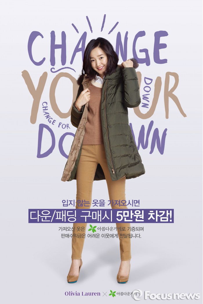 기존에 구매했던 올리비아로렌 아우터 제품을 매장에 가져와 기부하면, 다운과 패딩 제품 구매 시 5만원의 금액할인이 적용된다.