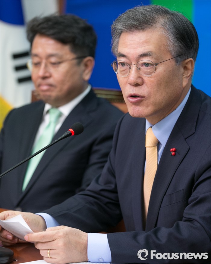 (서울=포커스뉴스) 21일 오전 서울 여의도 국회에서 열린 더불어민주당 뉴파티특별위원회 출범 회의에 참석한 문재인 대표가 인사말을 하고 있다.