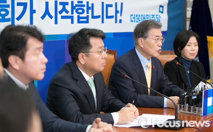 (서울=포커스뉴스) 21일 오전 서울 여의도 국회에서 열린 더불어민주당 뉴파티특별위원회 출범 회의에 참석한 문재인 대표가 인사말을 하고 있다.