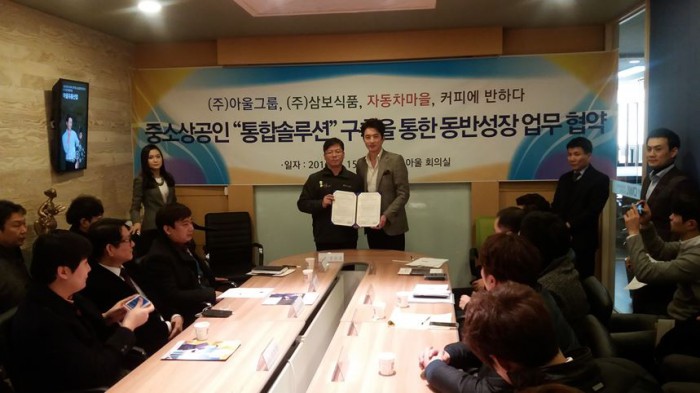 정준호 대표는 "아울시스템은 고달픈 삶을 꾸려가는 서민들과 청년들에게 온라인 보부상으로 성공의 기회를 제공하기 위해 공인으로서 사명감을 갖고 개발한 사회지향적 솔루션"이라며 "700만 중소상공인들과 청년, 직장인, 은퇴자, 주부 등이 생산자가 되고 동시에 소비자가 되는 유통공동체를 형성해 더불어삶을 실천하는 존경받는 창업플랫폼 전문 IT기업으로 성장할 것"이라고 말했다.지난 15일 서울시 구로디지털단지 소재 아울그룹(대표 정준호) 대회의실에서 ‘중소상공인 통합솔루션 구축을 통한 동반성장 업무 협약식’이 진행됐다. <사진제공=아울그룹>